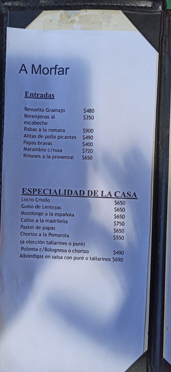 Welcome to A Morfar, a charming eatery nestled in Buenos Aires at Conesa 4400. Here, the focus is on hearty, homemade flavors that evoke comfort and warmth. The menu features delicious offerings, including three empanadas of your choice for ARS 6,900, and a generous portion of papas fritas for just ARS 7,000. The star of the show is undoubtedly the tortilla de papas, a delightful concoction of fried potatoes and eggs at ARS 12,000.